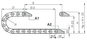 K = Zugschlag für Biegeradius bei der e-ketten Längenberechnung in mm