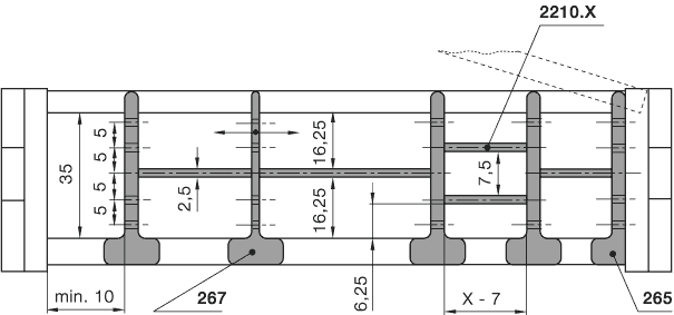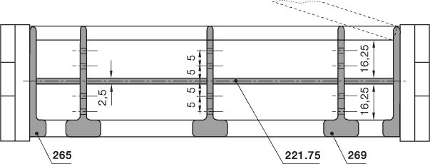 Teilung: 56 mm je Glied = 18 Glieder/m