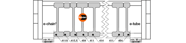 Wir empfehlen für Neukonstruktionen die technisch optimierte e-ketten®-Serie E4.112 aus dem igus® E4.1 Baukasten.