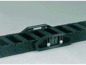 Gleitführungselemente Auto-Glide für die Serie 240. Alle 1000 bis 2000 mm werden spezielle Gleitführungselemente aus Kunststoff seitlich am Kettenglied angebracht. Sie sorgen für die exakte seitliche Führung und ein sauberes Gleiten der e-kette®.