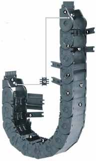 Bitte beachten Sie: Diese Serie ist nur nach Rücksprache für lange Verfahrwege geeignet. Wir empfehlen eine im Außenradius aufklappbare e-kette® für lange Verfahrwege. Z.Bsp. Serie 3500