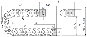 K = Zugschlag für Biegeradius bei der e-ketten Längenberechnung in mm