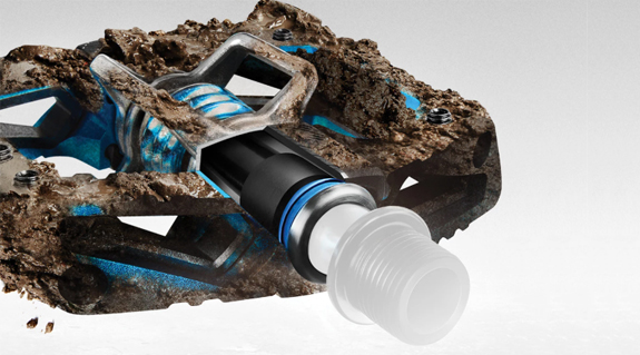 Schmiermittelfreie Kunststoff-Gleitlager sorgen für leichtgängige Pedalbewegungen trotz Staub- und Schmutzbelastung.