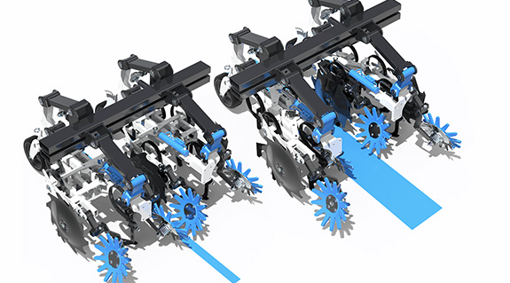 In einem Anbausystem für schnelles Jäten kommen iglidur Gleitlager zum Einsatz. Sie sind witterungs- und schmutzunempfindlich.
