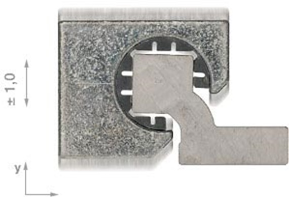 Obwohl es sich bei drylin® W um ein Profilschienensystem handelt, können Drehwinkelfehler um die x-Achse ausgeglichen werden. Hierzu steht ein Winkel von +/- 7° zur Verfügung. Verspannungen, wie man sie bei der Montage von Blechteilen kennt, werden effektiv eliminiert.