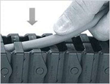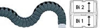 Die triflex® Serie ist entwickelt worden damit Kabel während einer dreidimensionalen Bewegung sicher geführt werden. In diesem Fall wurde die Flexibilität eines Schlauchs mit der Stabilität einer e-kette® mit fest definiertem Radius kombiniert. Mit Easy triflex® ist die Installation von Kabeln, Schläuchen kinderleicht. Durch die flexiblen Zungen können die Kabel von unten oder oben in die e-kette® gelegt werden. Das einzigartige modulare Design ermöglicht sehr komplexe Bewegungen. Als Beispiel: Kombination von einachsig, zweiachsig und dreiachsig bewegten Kettengliedern in einer e-kette®.
