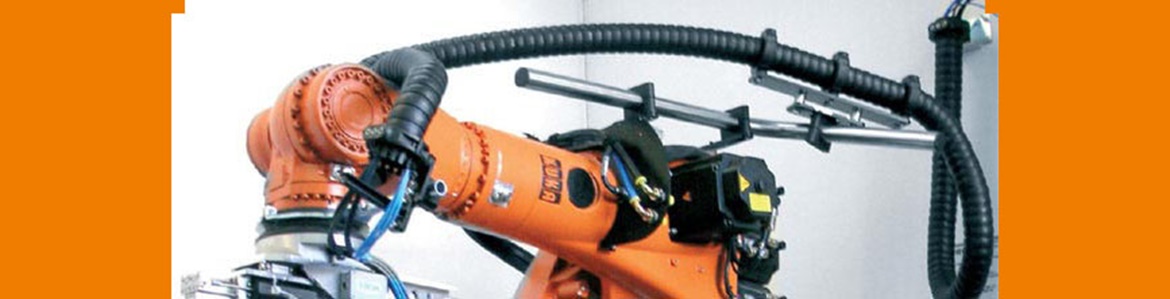 Anlagen u.a. für die Automobilindustrie, Fließformbohren (extrem hohe Drehzahl) , Gewindeschneiden (geringe Drehzahl) und Schraube festdrehen (mit extrem kleiner Drehzahl und Drehmomentenkontrolle) in einem Arbeitsgang. In einem Arbeitsgang können mit Weber Schraubautomaten Fließformbohren, Gewinde schneiden und das Festziehen der Schraube realisiert werden. Die Triflex® TRC Kette ist mit Elektroleitungen befüllt und einem Zuführschlauch durch den Schrauben in Richtung Schraubeinheit am Kopf des Roboters geführt werden. Durch den Knickschutz des Triflex® R Systems ist eine einwandfreie Zuführung der Schrauben gwährleistet.