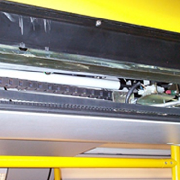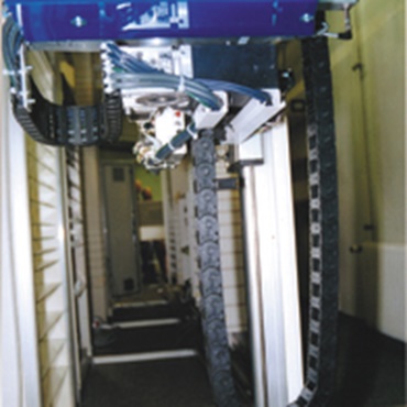 easy chain® Serie E14 an Servereinheit, zu Wartungszwecken ausziehbar. Reinraumklasse 2 ISO ist Standard