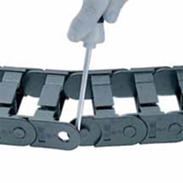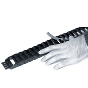 Leitungen und Schläuche können einfach mit dem Daumen in die Kette hineingedrückt werden. Das spart bis zu 80% Montagezeit .