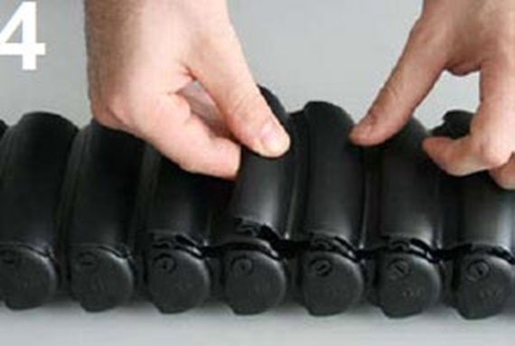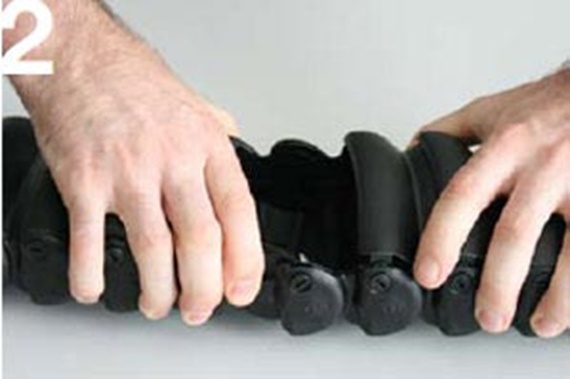 Mit etwas Druck den Bolzen des Kettenglieds in die Bohrung pressen, dabei das Rohr ggf. etwas in den Radius biegen, bis der Bolzen einrastet.
