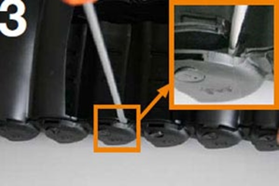 Setzen Sie den Schraubendreher zwischen den 2 Kettengliedern an (wie im Detailfoto dargestellt)...