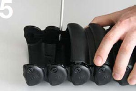 Öffnen Sie 3 Deckel hinter, 2 vor und den des auszutauschenden Kettenglieds.