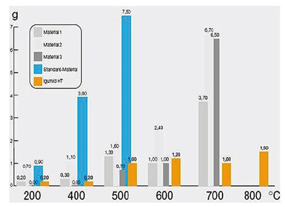Temperaturbeständig gegen Späne mit Temperaturen bis 850°C, kein Anhaften heißer Späne