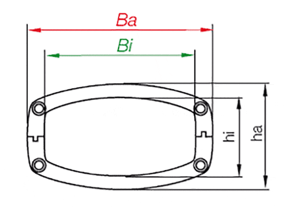 | hi [mm] | Bi [mm] | ha [mm] | Ba [mm] | R [mm] | |||