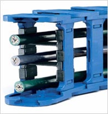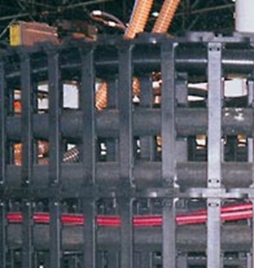 Die igus® Innenaufteilung bietet sichere Lösungen, auch bei schweren Hydraulikschläuchen