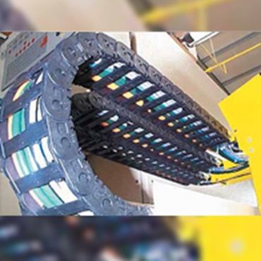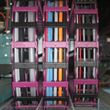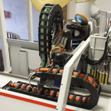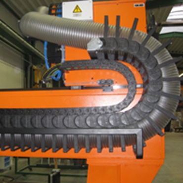 Kunststoff-Energiezuführungen in dieser Holzbearbeitungsmaschine.