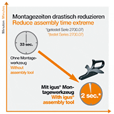 Getestet wurde die Montagezeit mit und ohne Werkzeug in der Montage in der igus® Fabrik