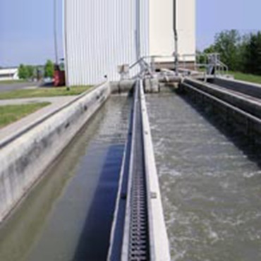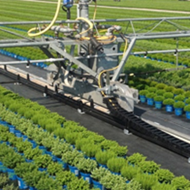 E2/000 Rollen e-kette® in einer "guidelite" Vollkunststoff Führungsrinne in einer Bewässerungsanlage.