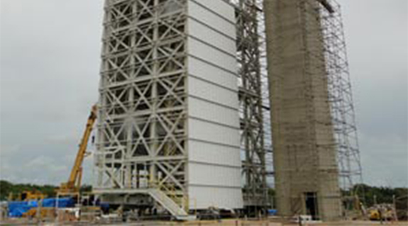 Diese Waage, die bei Versuchen im Windkanal eingesetzt wird, ist von der Ursprungsposition um 180° in beide Richtungen drehbar.