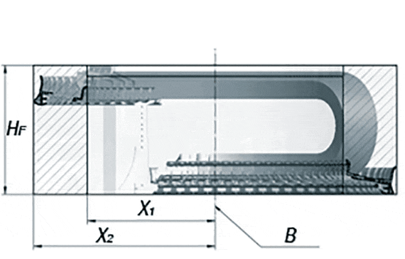 | X2 =Äußerer Maschinenbauraum | HF =Gesamthöhe Rinne |