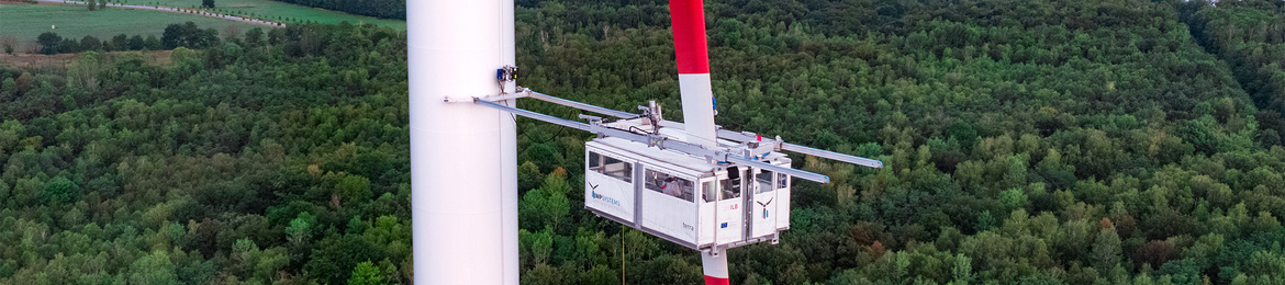 Leitungen, Energieketten und Gleitlager in Wartungsplattformen für WKA-Rotoren