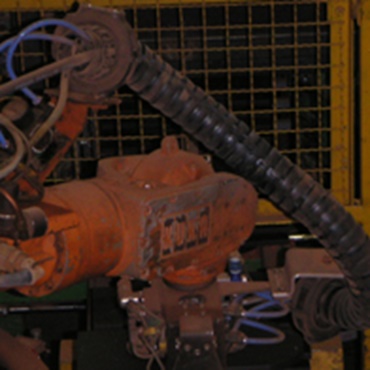 Gerade am Roboterkopf herrschen enge Verdreh- und Torsionsbewegungen. Hier begrenzt die triflex® R mit dem definierten Torsionsanschlag die Verdrehung der Leitungen und verteilt diese auf eine größere Länge. Dies erhöht die Lebensdauer der Leitungen und Schläuche.