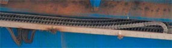 Aktuelle Untersuchung Die chainflex®-Leitung CF9.60.05 wird seit Jahren in Container- Kranen eingesetzt, im hier vorliegenden Fall mit einem Gesamtverfahrweg von ca. 47 m. Ein Untersuchungsauftrag des Betreibers sollte eine Leistungsbilanz nach über 40.000 Kettenkilometern herausstellen und ermitteln, ab wann mit einer vorbeugenden Wartung für die weiteren Geräte gerechnet werden sollte.