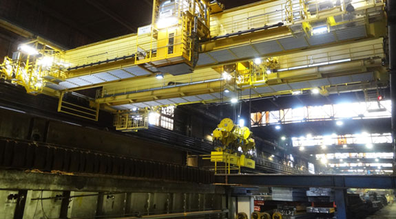 Im Duisburger Warmwalzwerk von Thyssen Krupp ist ein Brammentransportkran mit vorkonfektionierten Rollen-Energieketten für die Energiezuführung ausgestattet worden. Sie arbeiten zuverlässig unter widrigen Umgebungsbedingungen wie Hitze und Staub.