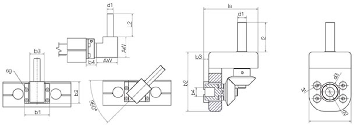 | Art.-Nr. | I | AW | kt | L2 | la | b1 | b2 | b3 | b4 | d1 | d2 | d3 | sg | ||