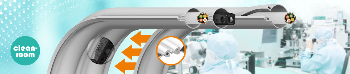 An die im Reinraum verwendeten Leitungen werden große Anforderungen gestellt. Sich bewegende Komponenten müssen besonders abriebfest sein, denn jegliche Verunreinigung wirkt sich produkt- und prozessschädigend aus. Das kostet Geld. Um dies zu erreichen, werden innerhalb des Raumes Luftströmungen festgelegt, welche Partikel, die kleiner als ein Haar sind, entfernen. Durch den Einsatz von Produkten mit geringem Abrieb – also wenig Partikeln – wird das aufwendige und teure Entfernen der Partikel eingespart.