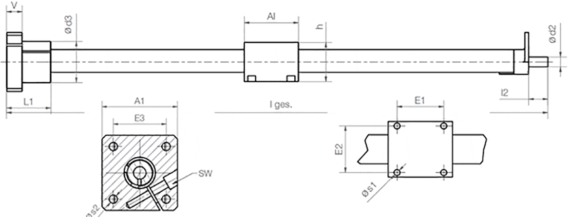 Bestellnummer A1 Al h E1 E2 E3 V L1 l2 d2 d3 l+Hub s1 s2 SW max. stat. Tragfähigkeit