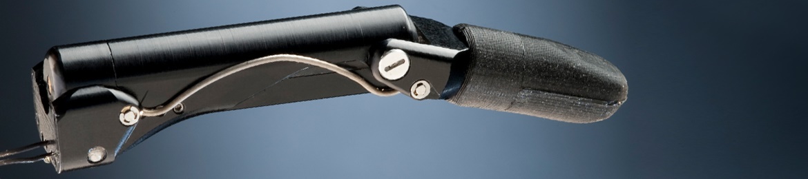 Bei dieser Prothese handelt es sich um einen elektrisch angetriebenen Finger. Das Fingergrundgelenk wird dabei direkt über einen Getriebemotor bewegt, wobei das Mittelgelenk über eine federnde Verbindung mitgeführt wird. Alle an dieser Bewegung beteiligten Achsen werden heute durch unsere Kunststoffbuchsen aus dem Werkstoff iglidur J gelagert. Insgesamt sind 8 solcher Lager in einem Finger integriert. Die Steuerung der Prothese erfolgt über Muskelsignale, die an einen Mikrocontroller weitergeleitet werden. Die Energieversorgung leisten 2 Lithium-Ionen-Batterien.