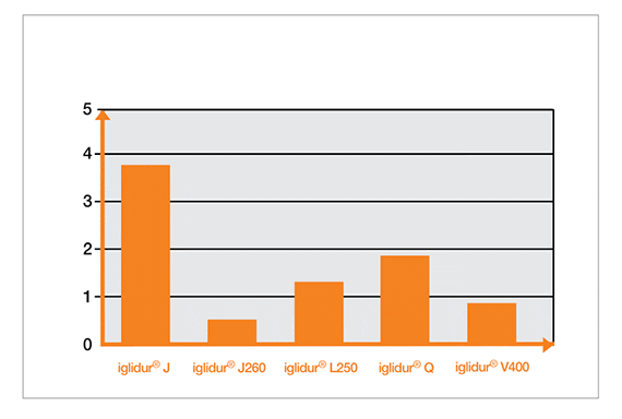 Getestet wurden Kohlefaserwellen in Verbindung mit verschiedenen iglidur® Lagern. Die ermittelten Verschleißraten der einzelnen Werkstoffe fallen sehr unterschiedlich – und teilweise auch für die Materialexperten von igus® überraschend aus. Nicht jeder iglidur® Werkstoff, der auf metallischen Wellen zu den Dauerläufern gehört, schneidet auch auf Kohlefaserwellen weit vorne ab.