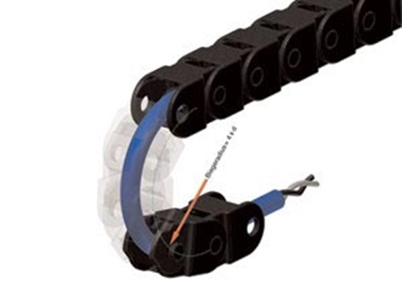 Langjährige Versuche haben selbst bei Radien von <3xd und über 60 Mio Hüben kein Verschleiß an den Leitern zeigen können. „Über zweieinhalb Jahre haben wir in unserem Labor in Köln eine aufwändige Materialrecherche betrieben, um für Anwender von sehr kleinen Energieführungsketten und den damit in der Regel verbundenen engen Biegeradien bei gleichzeitig hohen Hubzahlen, eine passende Leitung anbieten zu können“, berichtet Rainer Rössel. „Und am Ende stand die klassische Problemlösung. Bei minimalem Bauraum und engen Biegeradien, in diesem Fall 18 mm, können wir mit der CF98/CF99 eine funktionssichere Leitungsserie zur Verfügung stellen.“